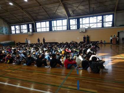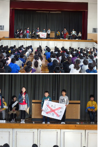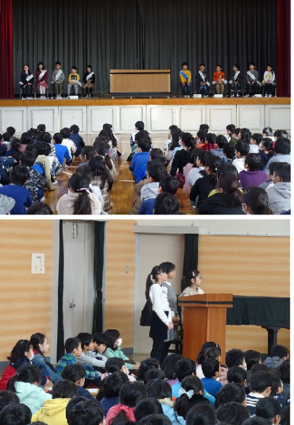 3年生から5年生が集まって、立候補者の演説を聴いて、投票を行いました。