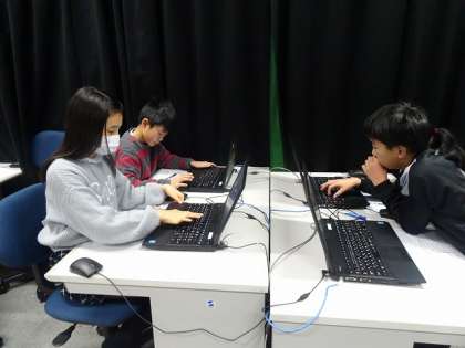 パソコン室で、学習プリントを使って、黙々と調べ学習をしていました。
