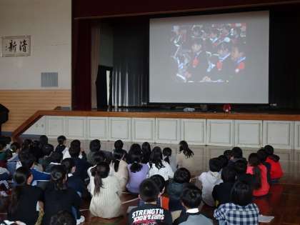 サプライズで、「6年生を送る会」で観る予定であった「6年間の思い出のアルバム」の上映がありました。