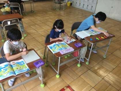 ヨットや家、風車など、三角形を並べるといろいろな形になることが分かりましたね。