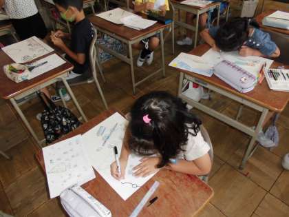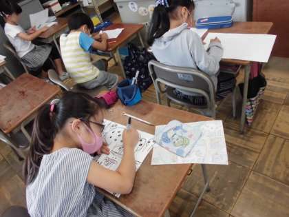 3年生は、絵本「どんぐりむらのいちねんかん」を読んで、好きな場面を絵に描きました。想像力豊かに絵本の世界を表現していました。