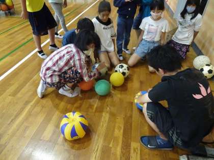 体育委員会では、ボールに空気を入れたり、倉庫の整とんをしたりしていました。