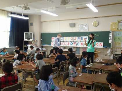 先生の発音をよく聞いて、楽しそうに行っていました。