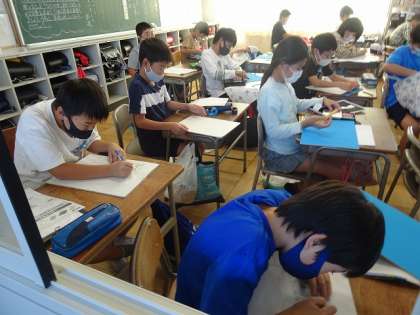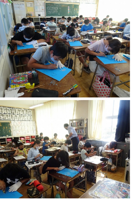 「運動会」または「キャンプ」の思い出をテーマに、下書きをしたり、板を掘ったりしていました。