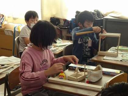 一人で黙々と取り組んだり、友だちを助け合ったりして、作品を作っていました。