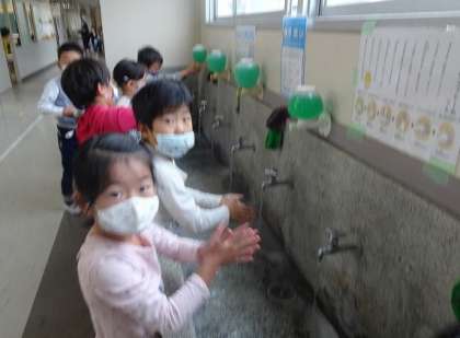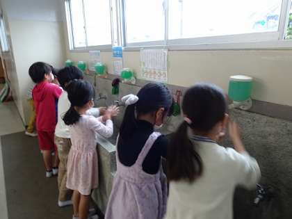 子どもたちは、進んで「手洗い」を行っています。