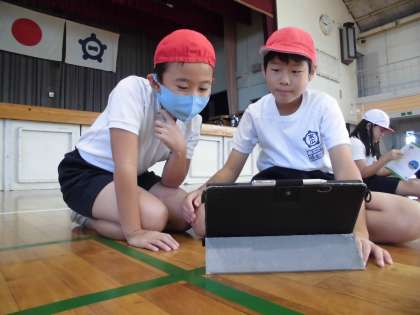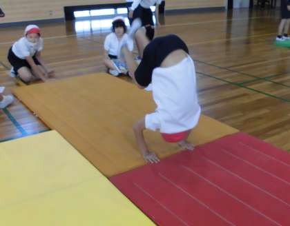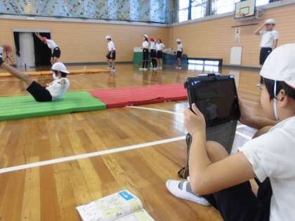 体育でマット運動を行いました。回転技を中心に技を組み合わせて発表会を行うための準備をしました。タブレットで撮影して、自分の演技を確認し、修正点を見付けてまた練習というかたちで繰り返し練習をしました。技だけでなく技と技のつなぎの部分も工夫するなど、連続技の完成が見えてきました。発表会が楽しみです。