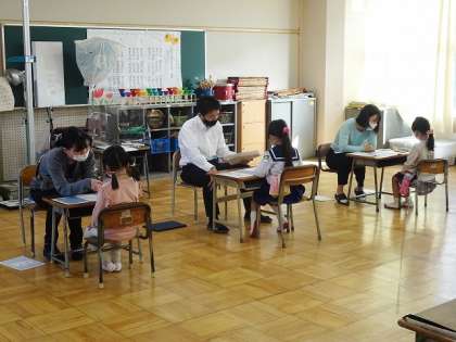 本日、就学時健康診断を行いましたところ、来年度入学されるお子さんの保護者の皆様には、お子様とともに、ご来校いただき、ありがとうございました。