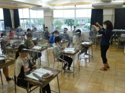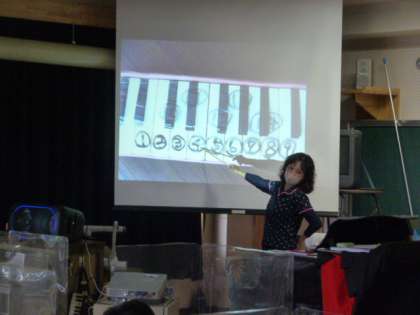 白鍵と黒鍵の鍵盤は元の音からどれがフラットやシャープになるのか、鍵盤の画像を見ながら確認していました。リコーダーの指使いでも、フラットの音で吹いていました。