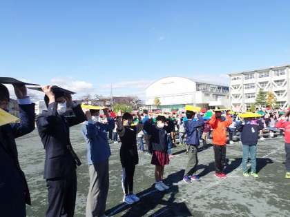 末広小学校の上空に、予定通りに、撮影のための飛行機が飛んできました!
