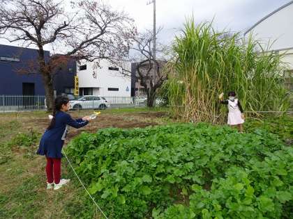 2年生では、「さつまいも」に続いて、「だいこん」を育てています。