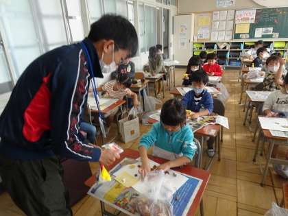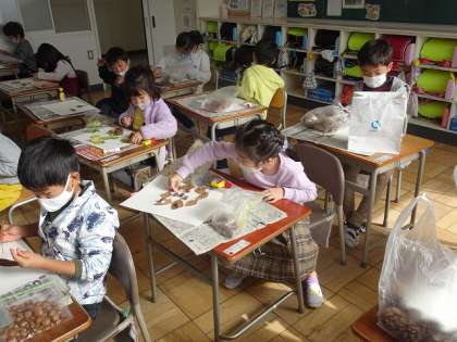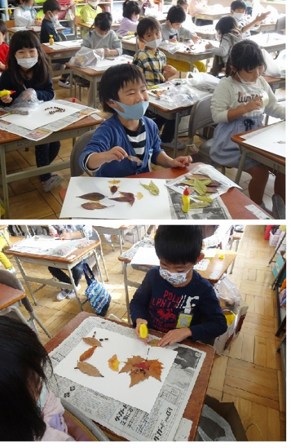 落ち葉やどんぐりなどで、思い思いの作品を作っていました。