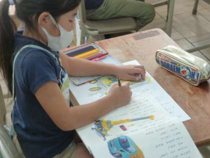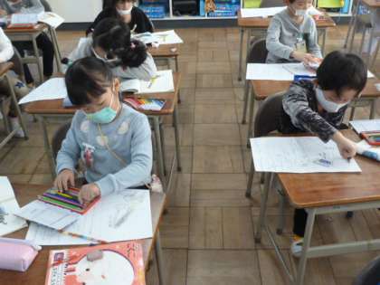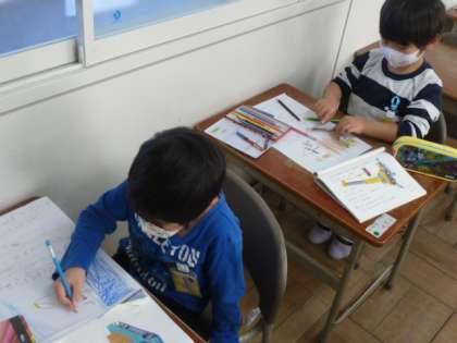国語の時間、自動車について学習しました。自分が選んだ自動車の特徴をプリントにまとめ、イラストを描きました。