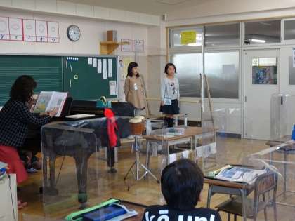 歌の発表会のように、歌う人と聴く人のマナーについて教えてもらい、テストが行われていました。