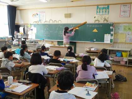 2年生の算数の授業では、「三角形や四角形」について、学習していました。