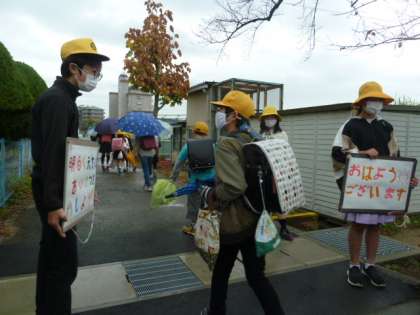本日はあいさつ運動最終日。あいにくの天気でしたが、地域の見守り隊の方、保護者の方、PTA、職員のみなさんの多くのご参加、ありがとうございました。今日であいさつ運動週間は終わりますが、これを機会に引き続きあいさつの輪が広がっていくことを願っています。