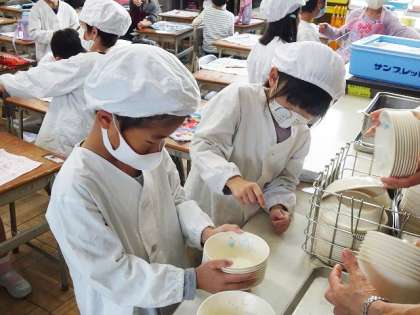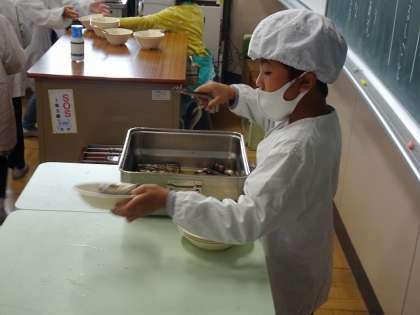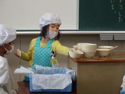 食器を数えたり、ご飯やおかずをつけ分けたり、しっかり責任をもって、取り組んでいます。