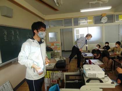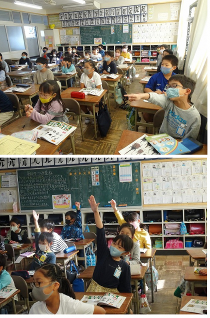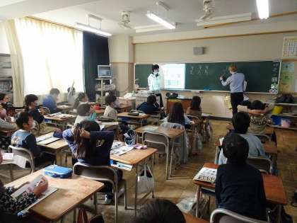 担任の先生と英語指導助手の先生が、チームワークよく、ヒントを出しながら、授業が進められていました。