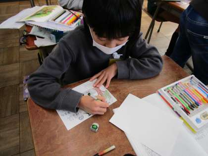 今日は国語の授業で、「プラタナスの木」のPOPをつくりました。本の魅力が伝わるように、文章や絵を考えながら一生懸命作成しました。