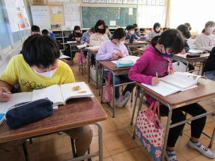 今日は国語の授業で「大造じいさんとガン」の読み取りを行いました。本文に書いてある大造じいさんとガンの台詞や様子をおさえながら、それぞれの心情をクラス全員で考えました。