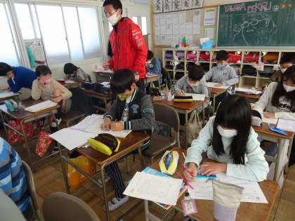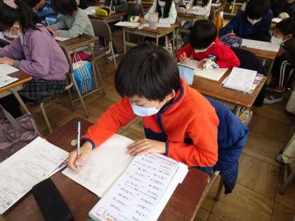 4年生の算数の授業では、ドリルや練習プリントを使って、復習を行っていました。