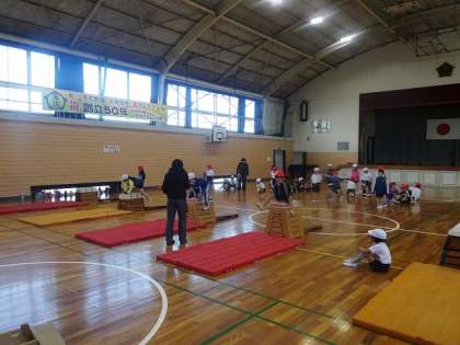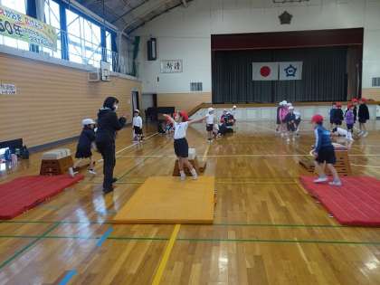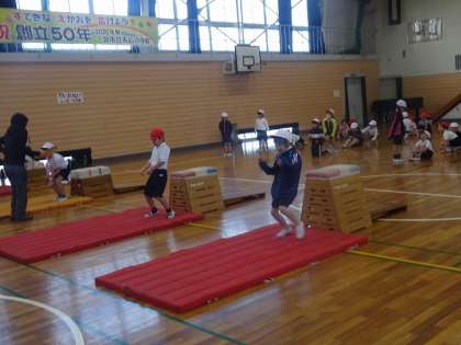 1年生の体育の授業では、とび箱の運動を行っていました。