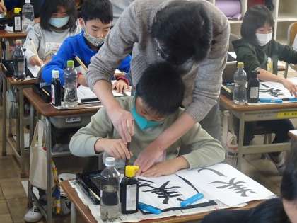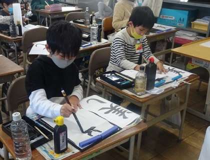 4年生の書写の授業では、「美しい空」という字を書いていました。