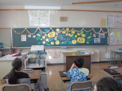 黒板にはみんなの手作りのメッセージが…。