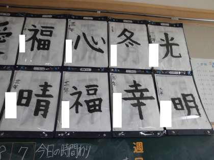 学校では、3年生から毛筆が始まり多くのことを学習しました。4年生になっても、書写専科の先生に教えてもらった書写の基礎基本を生かして頑張ってください。