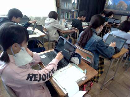 国語では、「日本の文化を発信しよう」の学習が始まりました。漫画、和食、料理、すもう…。日本にはたくさんの文化があります。今日は、一人一つテーマを決めて調べ学習をしました。タブレットを使った調べ学習も慣れたもので、集中して黙々と取り組むことができました。