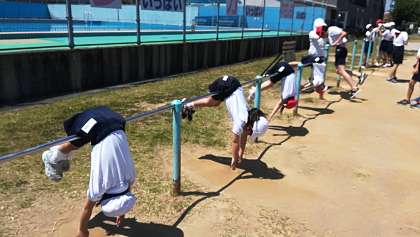 今日は、「つばめ」〜「ふとんほし」〜「前回りで下りる」にチャレンジしました。ふとんほしは、体を折り曲げる位置が難しいと感じた子どもたちもいて、昼放課には、練習に励む姿が見られました。