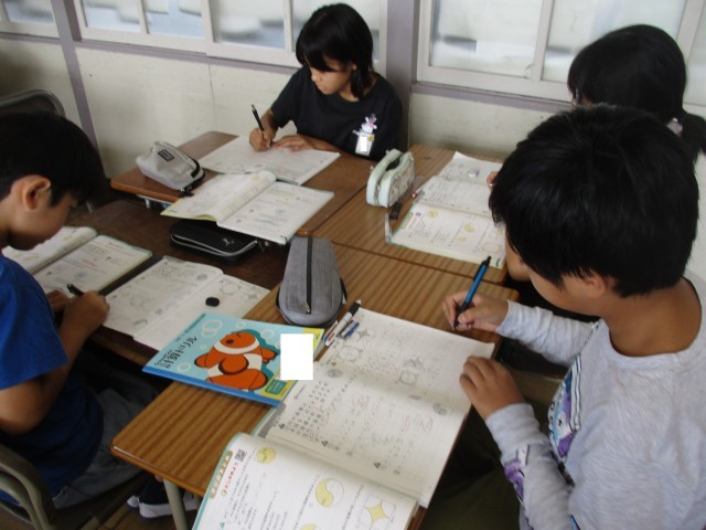 算数の授業です。いろいろな形の面積を求める方法をグループで考えました。円の面積や四角形の面積の公式を使ってどのように求めたらよいか考え合いました。