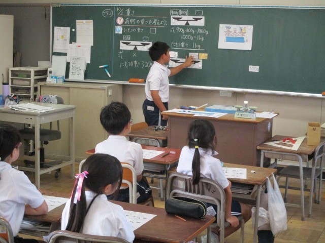 重さの違いはどのように求めればいいかをみんなで説明しています。
