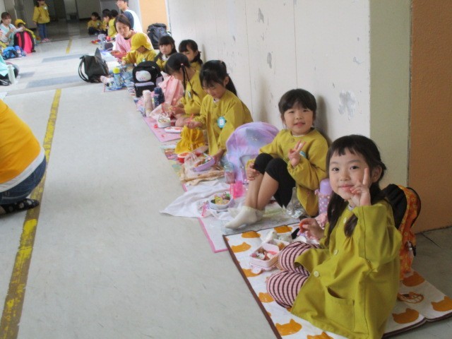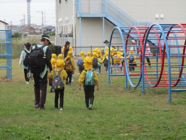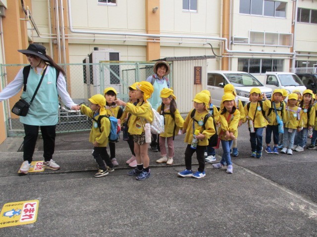 近隣の保育園の年長さんが遠足で葉栗北小に来ました。
