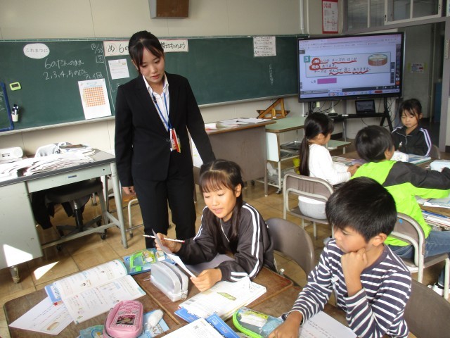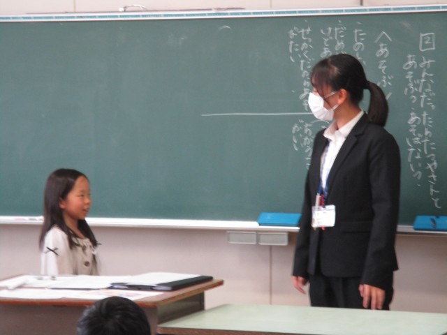 教育実習生が先生になるために実習を行っています。2年生に向けて、算数や道徳の授業を行いました。子どもたちも楽しく授業を受けていました。
