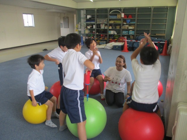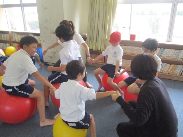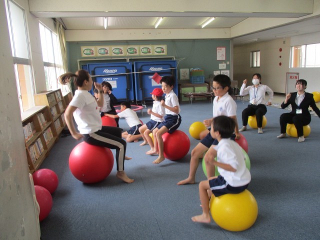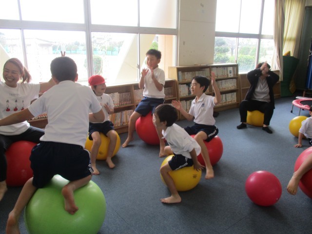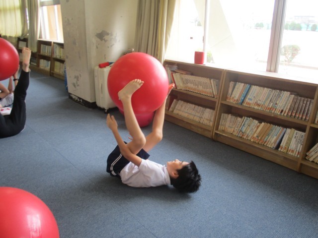 今日5時間目にバランスボール教室がありました。