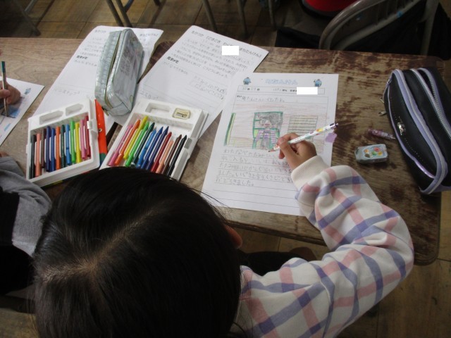 5時間目、町たんけんで学んだことをまとめました。見学ではいろいろなことを聞いたりメモしたりすることができたので、たくさん書くことができました。