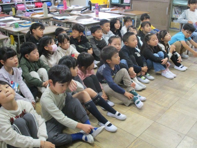 今日は1年2組の子たちがお話の世界を楽しんでいます。
