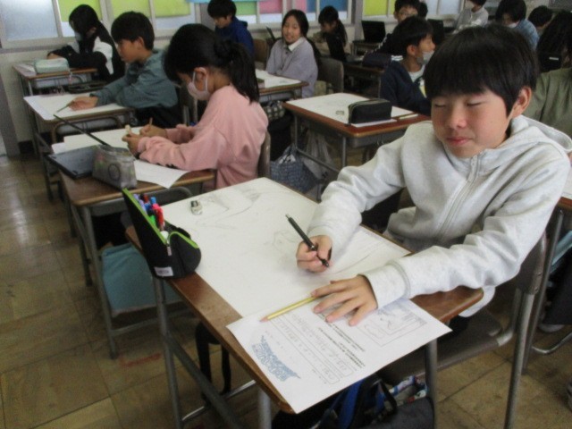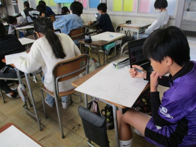 今、図工では読書感想画に取り組んでいます。