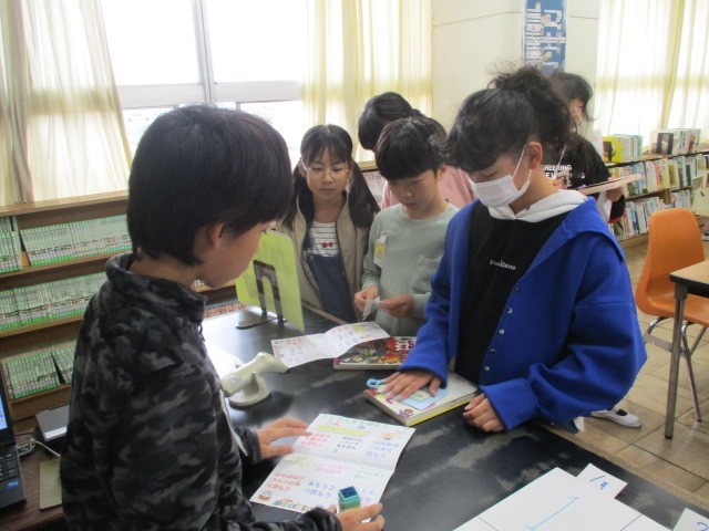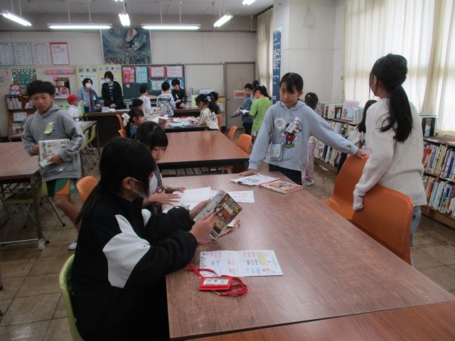 図書館にはたくさんの子どもが本を借りに来ていました。