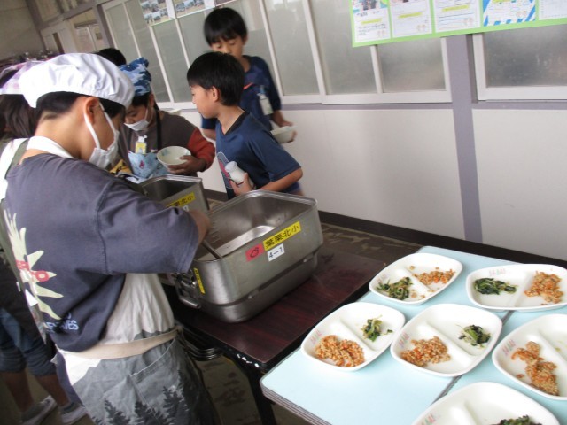 今日の給食は、ビビンパ、キムチスープでした。セレクトデザートの日でもありました。大福かゼリーかを選んで食べました。