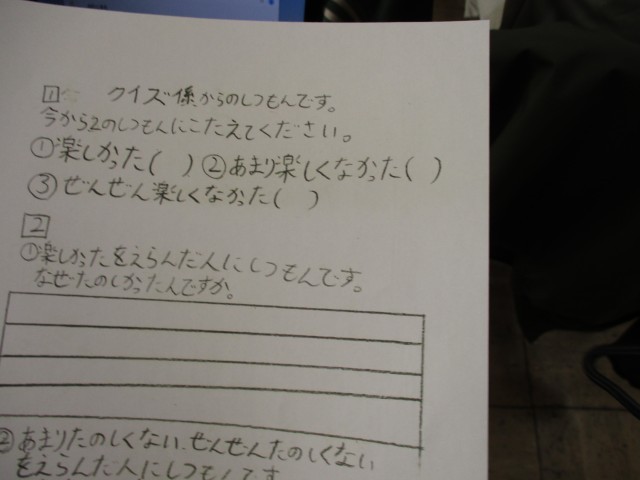クイズ係が、クラスのみんなにアンケートを依頼していました。自分たちのクラスをどのようなクラスにしたいか、自分たちで考え、活動しています。