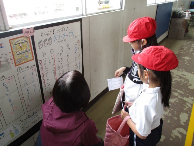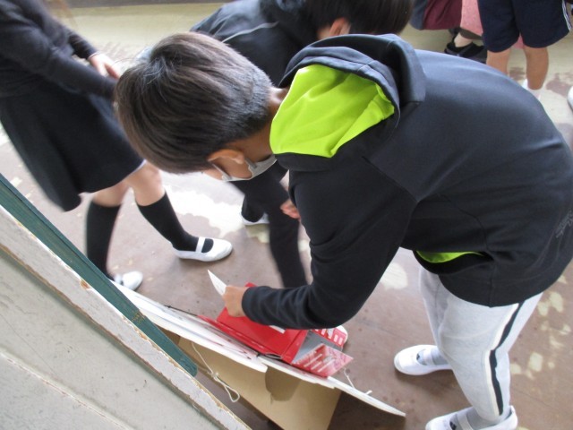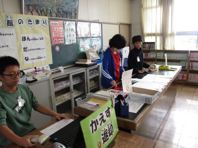 中間放課、読書郵便を投函するために、図書館にたくさんの子がやってきていました。そのなかで、今回の読書月間のミッションについてもう一度司書さんに教えてもらっている子たちもいました。いろいろなことをきっかけにして、たくさんの本と触れ合ってほしいと思います。