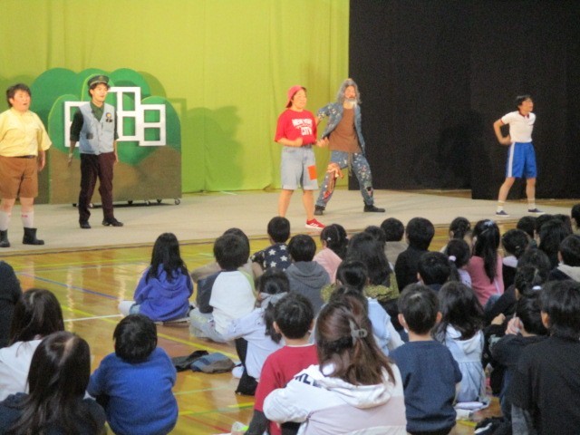 今日は劇団による劇「あやうし!ズッコケ探検隊」の参観しました。