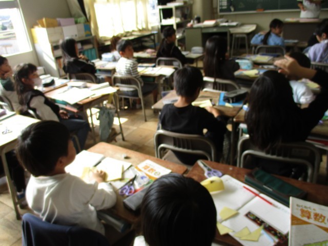今日は、三角形に一本線を引いて三角形や四角形を作りました。どこに線を引いたら四角形ができるのか、じっくり考えながら取り組んでいました。
