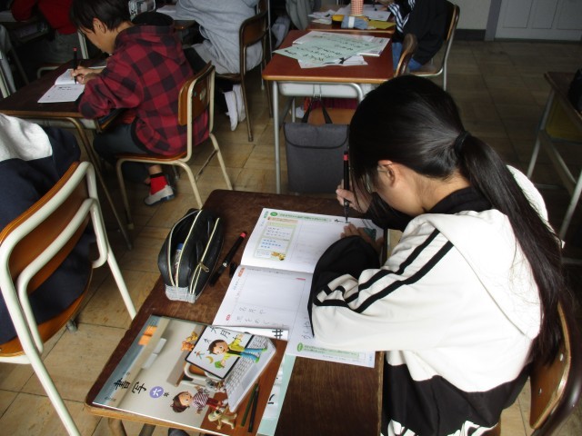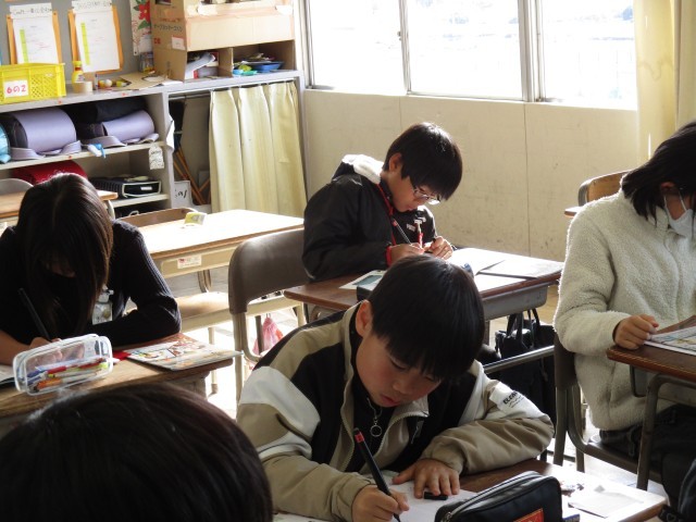 今日は、筆ペンを使って書く練習をしました。持ち方、力の入れ方が難しいですが、楽しんで書く様子がみられました。