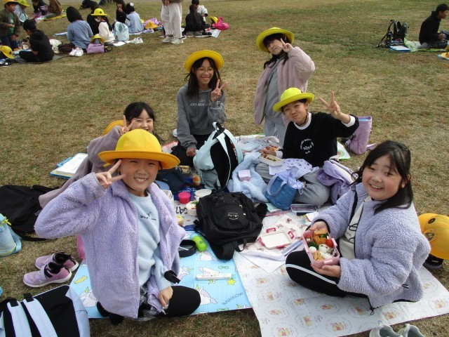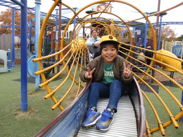 お昼は、みんなで一緒にお弁当を食べました。お家の方が作ってくれたお弁当をみんなとっても嬉しそうに食べていました。朝早くから、お弁当の準備をしてくださり、ありがとうございました。昼食の後は公園の遊具で元気いっぱいに遊びました。