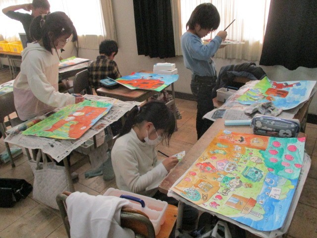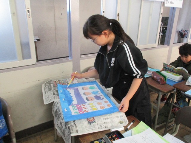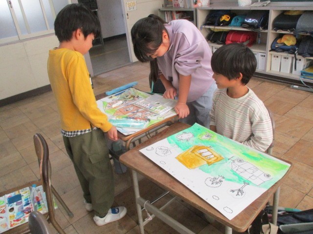 友だちにアドバイスをもらいながらよりよい作品に仕上げています。