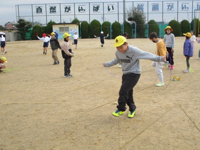 冬に負けない体づくりの一環で現在、リズム縄跳びを実施しています。