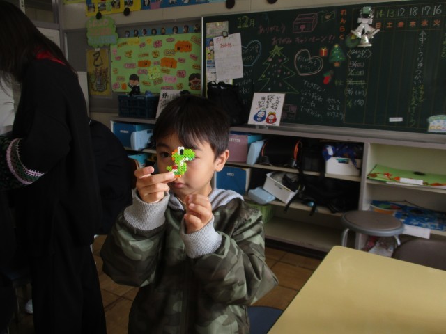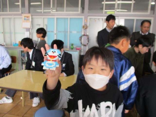 中学生の手作りのアイロンビーズをプレゼントしてもらい
